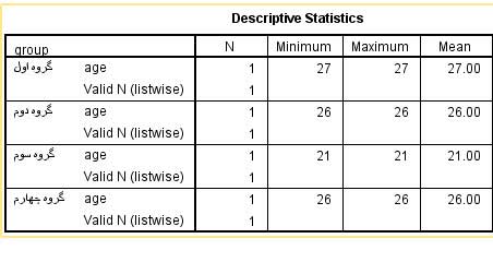 همانگونه که مشاهده میشود برای هر یک از چهار گروه فوق میانگین جداگانهای محاسبه شده است.