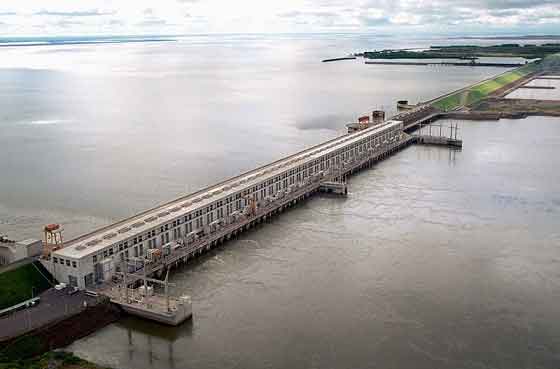 ۸- Yacyretá-Apipe: این سد بر روی رودی در بین دو کشور آرژانتین و پاراگوئه و در بالای آبشاری که نام سد از آن گرفته شده است در سال ۱۹۹۸ ساخته شده است. عرض این سد عظیم ۸۰۸ متر است و ۸۱ میلیون متر مکعب گنجایش دارد. همچنین ظرفیت نیروگاه این سد در حالت ماکزیمم ۴۰۵۰ مگاوات در ساعت است. هم اکنون به دلیل اینکه میزان ذخیره آب این سد ۷ متر کمتر از آن چیزی است که پیشبینی شده بود، نیروگاه سد با توان ۶۰ درصد ظرفیت خود به کار ادامه میدهد.