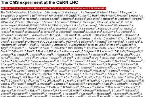 شاید شما هم نام سرن (سازمان اروپایی پژوهشهای هستهای) را شنیده باشید. سرن بزرگترین آزمایشگاه فیزیک ذرهای جهان است که در سوئیس قرار دارد. در سال ۲۰۰۸ مقالهای از سوی پژوهشگران این موسسه در مجله Journal of Instrumentation به چاپ رسید که ۳۰۹۹ پژوهشگر در نگارش آن همکاری کرده بودند. البته در برخی سایتها تعداد نویسندگان آن ۳۴۷۰ نفر ذکر شده است! (زحمت شمارش نویسندگان با شما!). در بین این ۳۰۹۹ پژوهشگر نام پنج دانشمند ایرانی نیز به چشم میخورد. جالب توجه است که نویسندگان این مقاله از ۱۷۷ موسسه پژوهشی بودهاند و همچنین این مقاله تاکنون ۲۲۰۱ بار مورد استناد قرار گرفته است (مقاله را در اینجا ببینید). البته از این موسسه مقالات دیگری نیز با چندین هزار نویسنده چاپ شده است که یک نمونه دیگر از آن را نیز میتوانید در سایت ساینس دایرکت (اینجا) مشاهده نمایید.