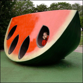 در جنوب شهر استکهلم سوئد، پارکی وجود دارد که بخش های آن متشکل از موز، گیلاس، پرتقال، هندوانه و میوه های دیگر می باشد. ایده اصلی این پارک به این دلیل بسیار جالب می باشد که به کودکان اهمیت خوردن میوه ها و آشنایی با آنها را نشان می دهد. مطالعه ای که بر روی شهروندان استکهلم انجام شد نشان داد که چاقی از ۸/۵ درصد به ۲۱ درصد در افراد رسیده است. ساخت چنین پارک هایی می تواند شهروندان و مخصوصا کودکان را ترغیب نماید تا از خوردن غذاهای ناسالم اجتناب کرده و از میوه ها و غذا های سالمتری استفاده کنند.