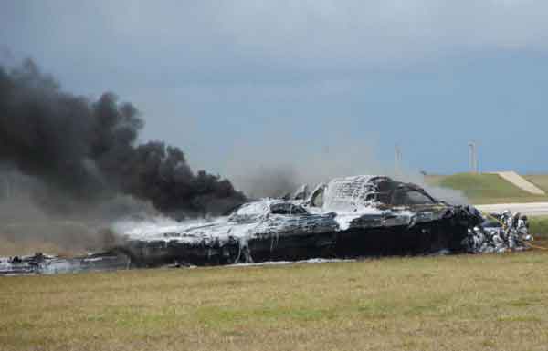 از مورد سه به بعد از زیانهای میلیون دلاری به میلیارد دلاری می رسیم. در ۲۳ فوریه ۲۰۰۸ بمب افکن b-2 مدت کوتاهی بعد از پرواز خود از پایگاه هوایی گوام، سقوط کرد. محققان بعد از بررسی این هواپیما دلیل سقوط را رطوبت موجود در سیستم کامپیوتری این هواپیما اعلام کردند. این هواپیما یکی از ۲۱ هواپیمای بسیار گرانبهای b-2 بود که ساخته شده بود. هر دو خلبان ایجکت کرده و توانستند جان خود را نجات دهند. زیان این تصادف ۱٫۴ میلیارد دلار برآورد شد.