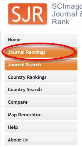 ۳- در سایت سایمگو از منوی سمت چپ بر روی گزینه Journal Rankings کلیک کنید.