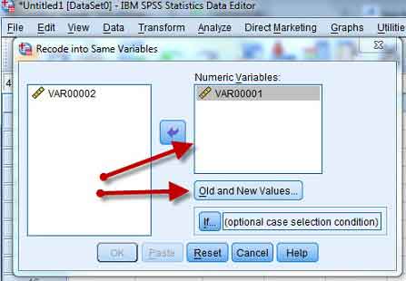 ۲- متغیر مورد نظر خود را در کادر Numeric Variables وارد کنید و گزینه Old and new values را بزنید.