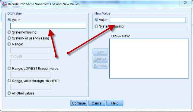 recode یا کدگذاری مجدد بر روی متغیرهای موجود (Recode into same variables): اگر میخواهید تغییراتی که در یک نمره انجام میدهید بر روی همان نمره اعمال شود از این گزینه استفاده کنید. به عبارت دیگر نمرات قبلی شما پاک شده و نمرات فعلی جایگزین آن خواهد شد.