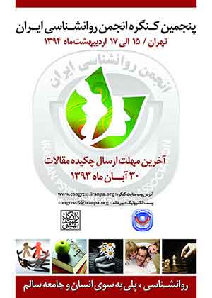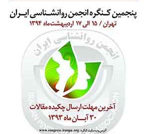 پنجمین کنگره انجمن روانشناسی ایران در تاریخ ۱۵ الی ۱۷ اردیبهشت ماه سال ۱۳۹۴ در تهران برگزار میگردد. با توجه به اینکه مهلت ارسال چیکده مقالات برای این کنگره تا ۳۰ آبان است، دانشجویان و اساتید باید مقالات خود را تا این تاریخ ارسال نمایند. پیام امسال کنگره “روانشناسی، پلی به سوی انسان و جامعه سالم” است. بدینوسیله از کلیه دانشجویان، اساتید و پژوهشگران دعوت میشود تا مقالات خود را برای این کنگره ارسال نمایند. محورهای پنجمین کنگره انجمن روانشناسی ایران در زیر آمده است.